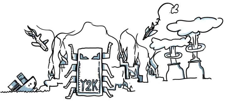 2000 är ett magiskt årtal, men det får också många IT-chefer att bli en smula oroliga. Räddningstjänsten står också på tå vid årsskiftet, men den så kallade millenniebuggen blir det nästan inget med. Mycket tack vare att problemet, att de tvåsiffriga systemen trott att året efter 1999 är 1900, hinner lösas i tid runt om i världen. Däremot slutar alla taxametrar på Taxi Åmål att fungera.